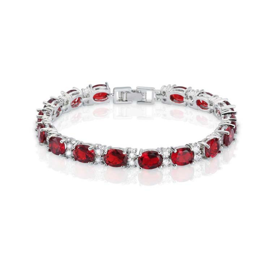 Ruby and Diamond Accents 14K White Gold-Filled Tennis Bracelet / Oval-Shaped